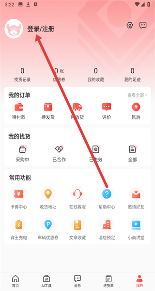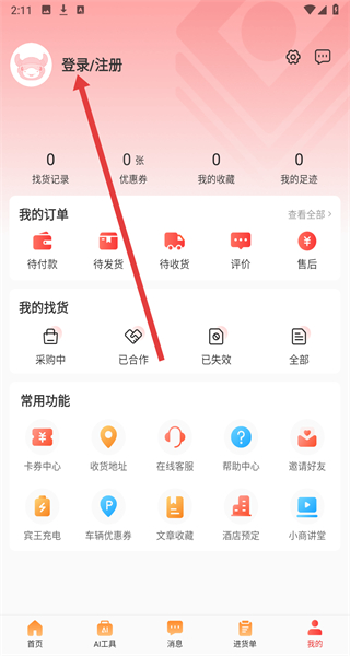 2、个人中心页面点击“登录/注册”,进入登录界面。