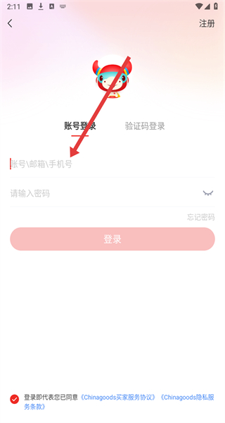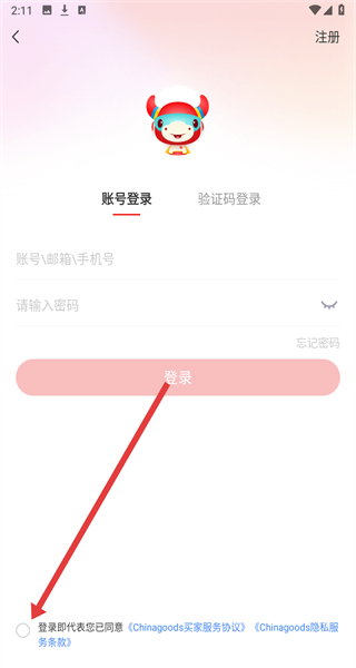 3、进入到登录页面中,在登录前需先点击勾选下方同意按钮后操作。