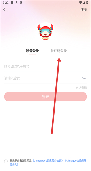 3、登录界面点击“验证码登录”,切换至验证码登录方式。
