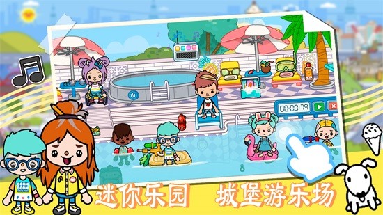 欢迎来到迷你乐园托卡假期玩乐,在迷你乐园里有很多地方可以进去:阳光沙滩、APA化妆购物店、城堡、游乐场等儿童趣味玩乐,益智又儿童教育的一款有趣应用。应用免费并多个场景展示不一样的儿童小朋友喜欢的风格。在游乐园里坐着欢乐的旋转木马,在摩天路上和家人一起看日落,欣赏这个家园的美景!在中心公园里和朋友家人野餐,放风筝,逗着小狗玩!在海滩边吹着海风,用沙子堆城堡,看浪花,看日落!海盗船的秘密找到了吗!?这将是一个清爽的夏日假期!还有更多精彩的故事等待你的挖掘!