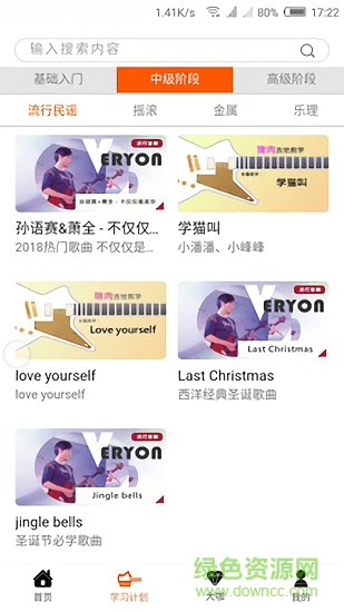 学学吉他是一款专门用来让吉他爱好者学习吉他的一款手机软件,全面的知识讲解,超多的热门歌曲谱子讲解,更有视频学习,不同风格的歌曲讲解,喜欢吉他的朋友一定不要错过。欢迎来绿色资源网下载!