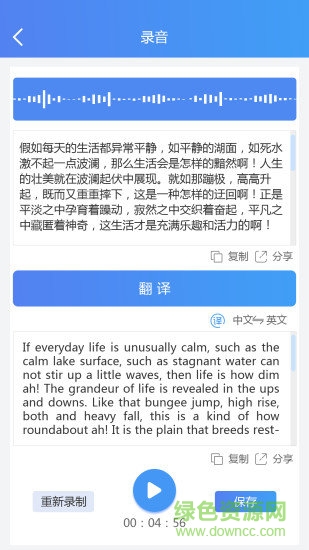 语音文字转换助手app是一款非常实用又方便的办公软件,有了它就能快速的实现语音和文字之间的互转,有效的为你提升工作效率,特别是需要大功率通过输入文字办公的,这可是款不可多得的神器哦,有需要的朋友就请来绿色资源网下载使用吧!
