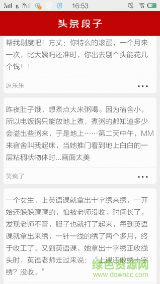 头条段子app是一款专注于手机看新闻的软件,这里每天都要大量的搞笑段子逗大家开心,当然也有实时热点新闻和视频资讯,是一个功能强大的新闻软件,对于有需要的朋友来说还是不错的,欢迎大家来绿色资源网下载。