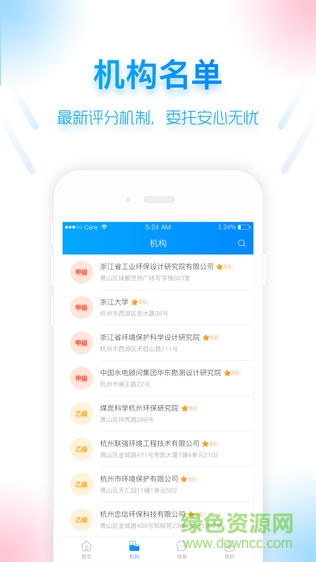 【环评机构名单】 列出环评机构所有名单,通过在线沟通和委托授权,进行线上的沟通和资讯完成授权办理,也可查看到环评机构目前的评分信息。