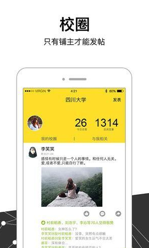 【校圈】为铺主们提供一个在校园内单向传播的渠道,晒自拍晒生活,成为校园网红只要分分钟。