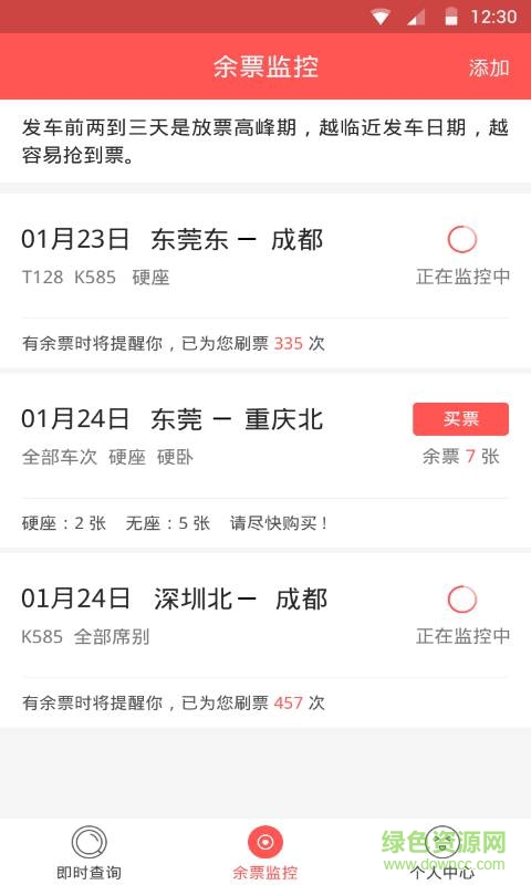 【余票监控】自动监控余票,一旦有票就会马上通知您;