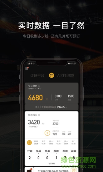 羽约运动订场管理后台,提供用户订场,支持场馆手动添加订场订单,会员充值系统,用户数据管理,财务记账经营分析等。