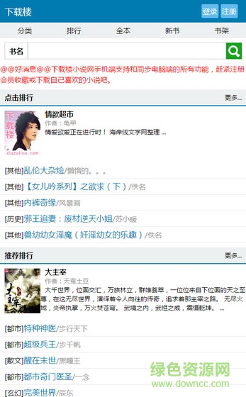 下载楼小说网app手机版是一款官方最新版的手机阅读小说网站apk软件,聚合全网热门小说,海量精品,极致排版,极速缓存,追书轻松畅快,喜欢的朋友欢迎在绿色资源网下载!