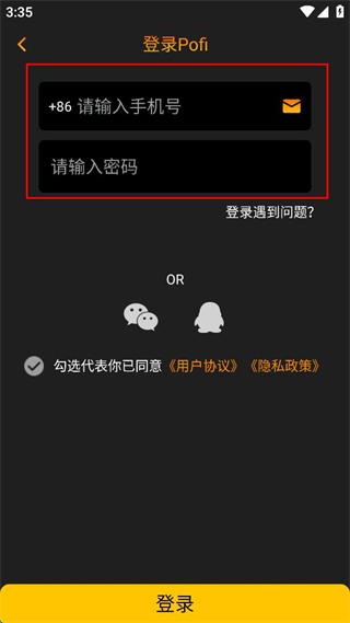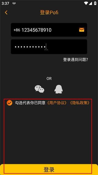 4、勾选勾选代表你已同意用户协议隐私政策,点击登录按钮。