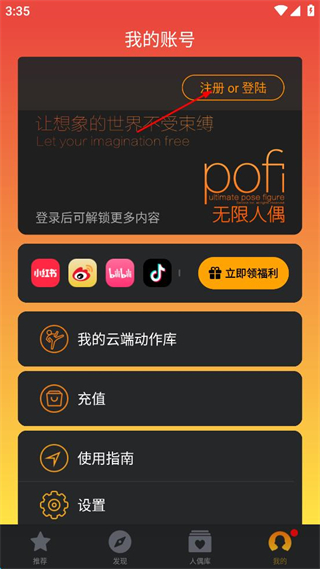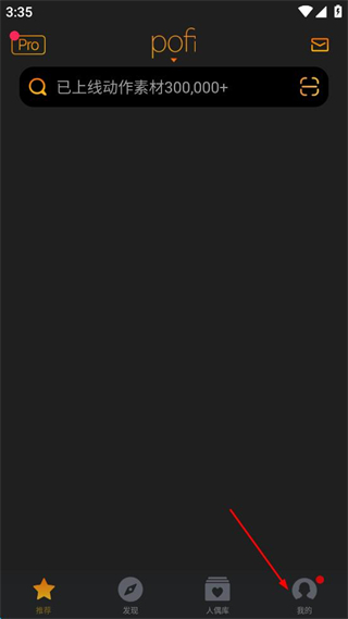1、找到Pofi无限人偶推荐界面的我的选项,点击我的。