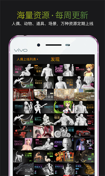 「Pofi」使用云端下载方式无限制更新绘画资源,包括三维可动人偶、静态虚拟手办、动作库、动画库、手势库、材质灯光库、道具主题包、场景主题包等。通过触屏操作调整人偶,配合资源库快速布景与制定动作,高效完成漫画起稿、动画分镜、电影构图等工作。Pofi灯光系统和次世代模型细节可帮助传统美术生掌握素描光影和速写要领。