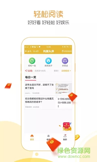 赏金段子app为用户带来好玩的段子分享,每日一笑不断更新,超多有趣的内容看不停,边看段子边赚钱,还可以通过签到、收徒弟方式快速获取收益,平台佣金高真实可靠,欢迎来绿色资源网下载!