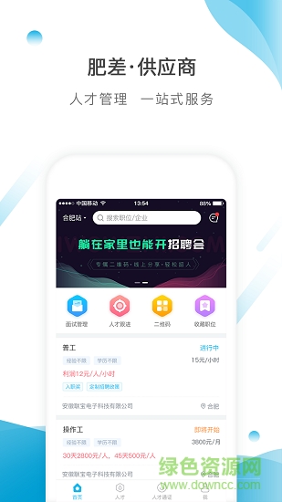 肥差供应商app一款致力于为用户提供人才服务的手机软件,可以将企业需要的人才信息进行匹配,然后为企业推荐合适的人才,安排面试等等,非常便利。有需要的朋友欢迎来下载!