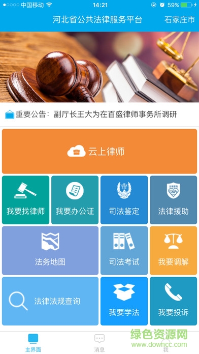 冀法通app是专为河北市民提供的一款公共法律服务平台,该应用中为大家提供了我要找律师、我要办公证、法律援助等功能,可以帮助用户解决各种法律问题,方便快捷专业,需要的朋友欢迎来绿色资源网下载!