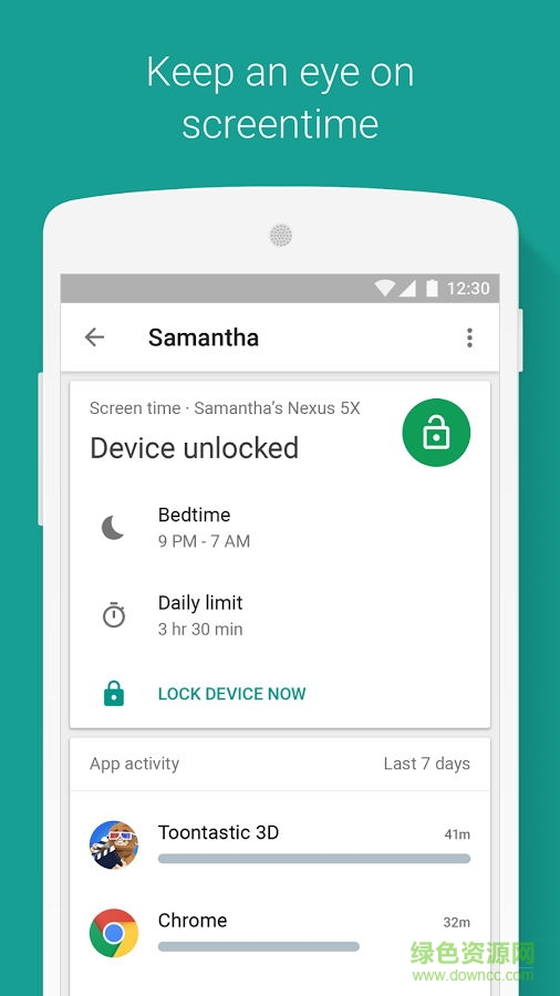 谷歌家庭连接app是谷歌推出的一款管理孩子使用各种家庭设备和手机软件的工具,让你能了解孩子们的各种生活习惯,让孩子更健康的成长,绿色资源网诚意推荐!