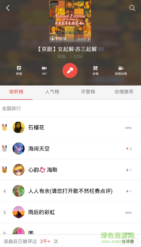 全民k戏曲app是一款唱戏曲和比拼的手机软件,这里汇集了丰富的戏曲资源,京剧、豫剧、越剧、黄梅戏、评剧应有尽有,用户可以选择自己感兴趣的戏曲进行演唱,可以听别人唱的精彩戏曲,还有详细的比拼排行,欢迎有需要的朋友到绿色资源网下载使用!