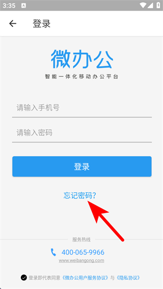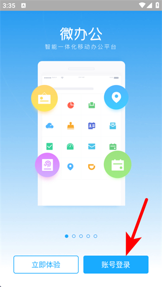 1、打开微办公APP,点击账号登录的按钮,进入登录的页面。