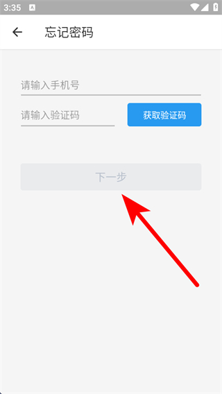 3、在页面输入手机号和验证码,点击下一步,按照提示完成找回。