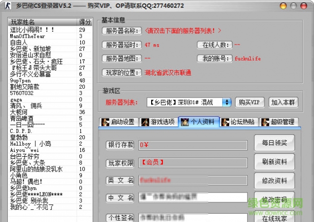 乡巴佬cs登录器是一款专门用来登陆乡巴佬CS服务器的游戏工具,功能强大,操作简单易上手,使用这款登陆器玩游戏更痛快,有需要者欢迎在绿色资源网!