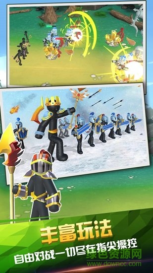 控制你的军队组编或出动各个战斗单位,你可以全权控制所有火柴人。