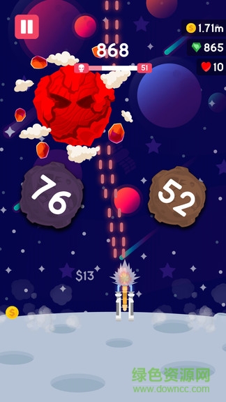 控制非常简单:只需在屏幕上左右滑动手指即可移动你的大炮,同时粉碎流星。此外,当你粉碎流星时,你必须逃脱从它上掉下来的小碎片。