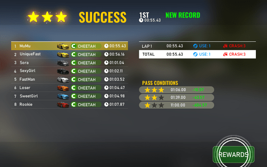 游戏玩法十分的简单,每一个关卡都会与其他赛车手同台竞技,不同的关卡,要求通关的名次不同。