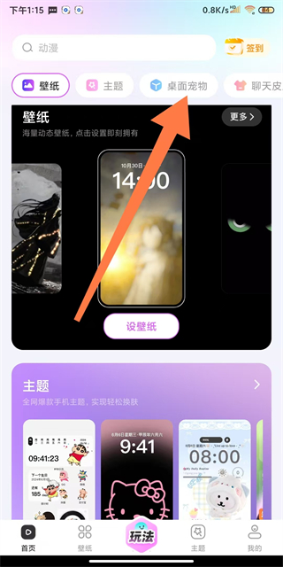 1、在相关APP首页,点击桌面宠物选项,进入桌面宠物页面。