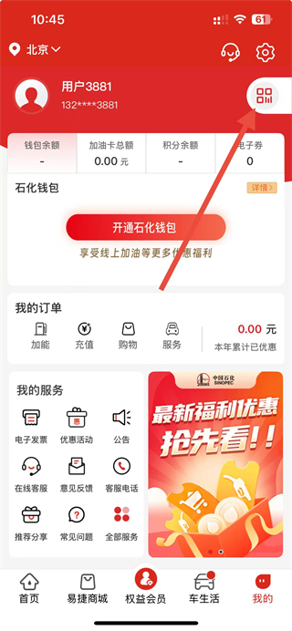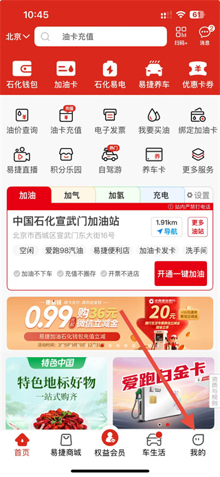 1、在易捷加油首页界面,点击底部我的选项,可进入个人页面。