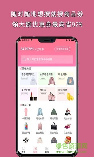 流行集市是专业的手机购物网站,用户在软件中能一键找到各种喜欢的的商品,便于一键生气那购物,还能领取各种大额优惠券,让你的网购变得非常简单。喜欢就来绿色资源网下载吧!