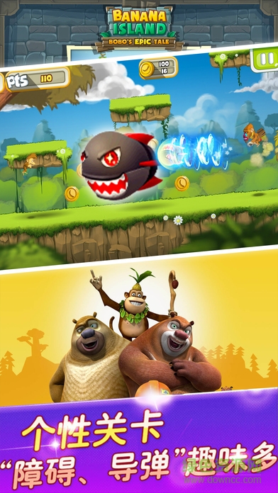 《熊出没之悟空跑酷 Banana Island Bobo's Epic Tale》2017年良心巨作,用心制造游戏,让您体验一款经典的动作横版跑酷小游戏。