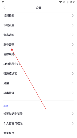3、在设置页面中找到账号密码选项,点击进入对应的功能设置界面。