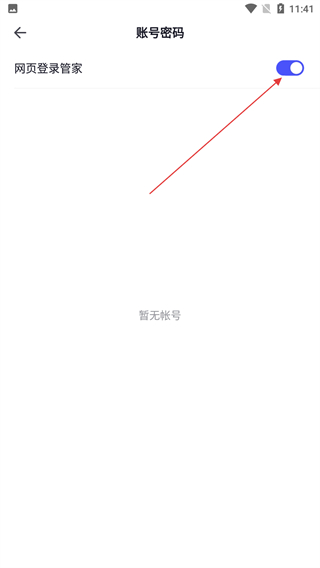 4、在账号密码界面中,找到网页登录管家的开关,点击开关将其关闭。