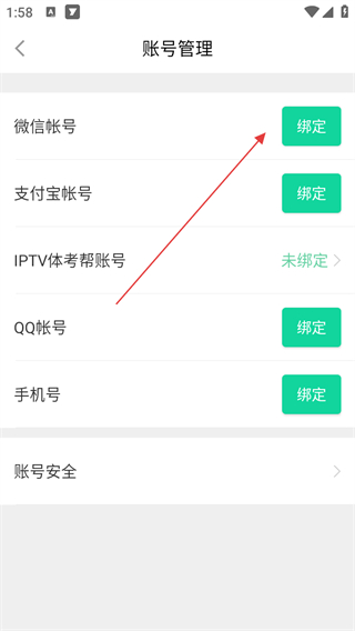 4、点击微信帐号右侧的绑定即可。