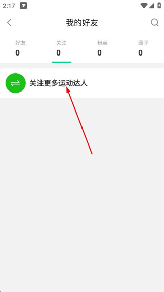3、在我的好友页面点击关注更多运动达人,进入用户推荐页面。