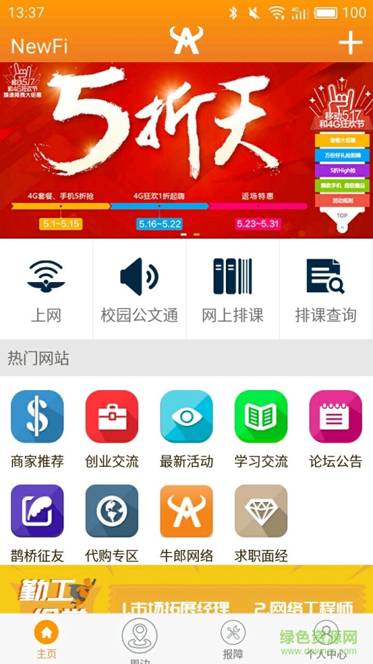 NewFi app是一款提供校内或企业免费上网服务的工具,为用户提供优质的无线网覆盖,让大家踊跃最流畅最稳定的上网冲浪浏览功能,绿色资源网诚意推荐!