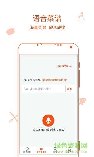 语音搜菜谱:网罗线上海量菜谱,即说即搜, 原汁原味一步到位。