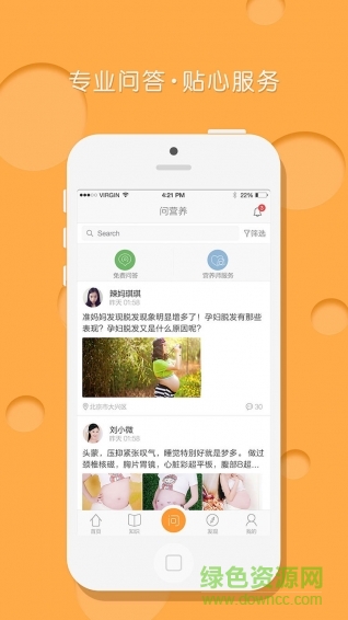 问营养app是一款非常棒的营养资讯应用,在这款app中含有大量的营养方面的知识,用户还能够在这款应用中就营养方面的问题咨询专家,由专家为你解答应用问题,给你的健康带来帮助,有需要的朋友欢迎来绿是资源网下载使用。