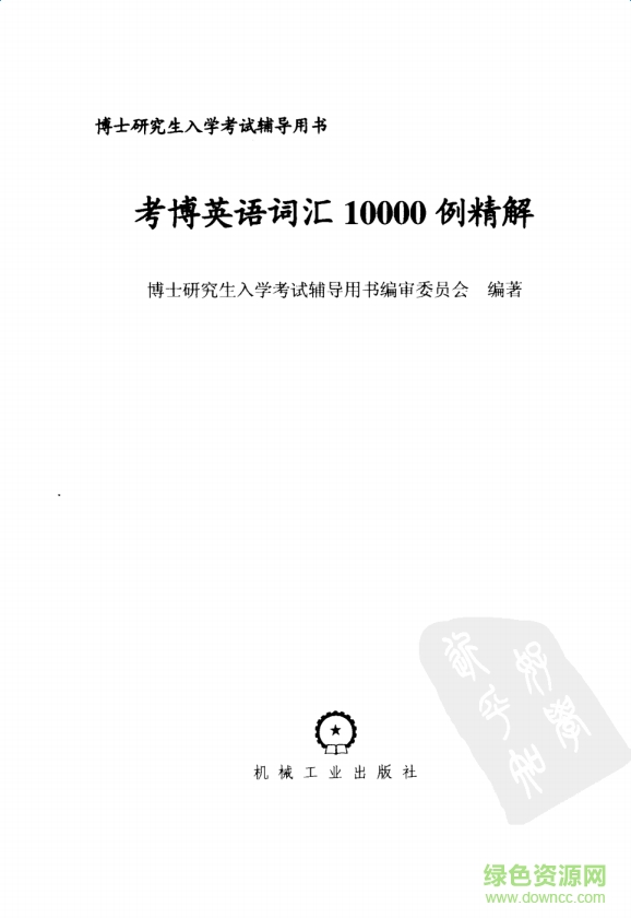 考博英语词汇10000例精解可谓是考博生们奉为词汇参考书的经典,绿色资源网特为大家整理了考博英语词汇10000例精解PDF完整下载供考生们复习背诵, 考博英语词汇10000例精解包括了博士研究生招生考试基本词汇及其衍生词汇共计余万例。书中精心挑选了同义词反义词以及派生词,并辅以经典例题和长难句进行深入讲解,尤其是将重点院校的词汇真题融入核心词汇的解析中,使考生能深入掌握词汇将背记单词与考试进行有机结合。