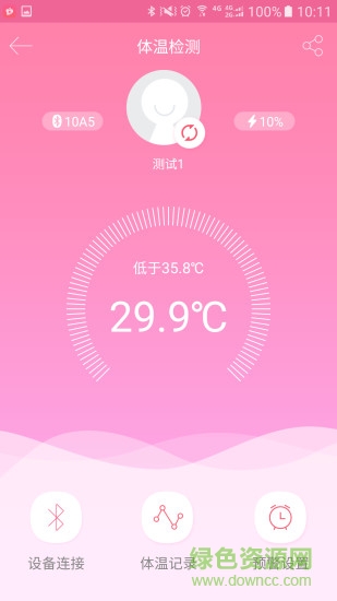 实时显示当前体温;实时监控宝宝体温,并存入历史记录供随时查询;并设有高/低温预警,当体温高于设定温度时,智能提醒;呵护宝宝的健康,妈妈更放心