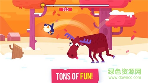 路上如果偶遇企鹅、野猪、雪怪……等等,一定记得扑到它们身上让它们带着自己滑哦,有它们在可以大幅度的提升滑行速度呢。