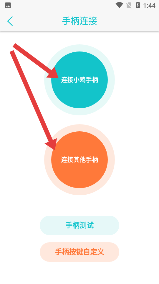 3、进入手柄连接页面后,根据实际手柄类型,选择连接小鸡手柄或连接其他手柄来完成配对。