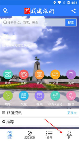1、打开武威旅游,进入主界面后点击底部的我选项,进入个人中心页面。