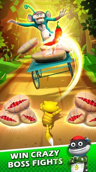方式,它们可以帮助您收集简单的硬币,硬币可以用于升级Power-up,使其使用寿命更长,可以让您的跑步与自行车和汽车达到Headstart或Mega Headstart,与丛林中的Bad Monkey进行Boss战斗告诉他谁是真正的老板。