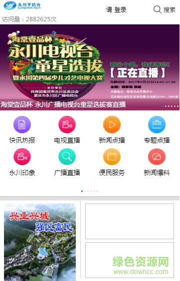 永川手机台是区广播电视台打造的智慧城市新媒体移动新闻平台。永川手机台的上线运行,不仅实现了在手机上看电视、听广播,而且还有新闻资讯、生活服务、网上政务、电子商务,以及新闻报料、评论分享、直播点播等多种功能,是以视频内容为基础,本地新闻为特色,生活服务为主体的综合服务型手机客户端。快来绿色资源网下载吧。
