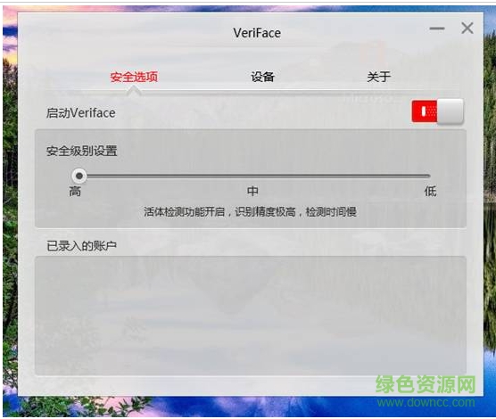点击“启动Veriface”按钮可以启用或停用Veriface;