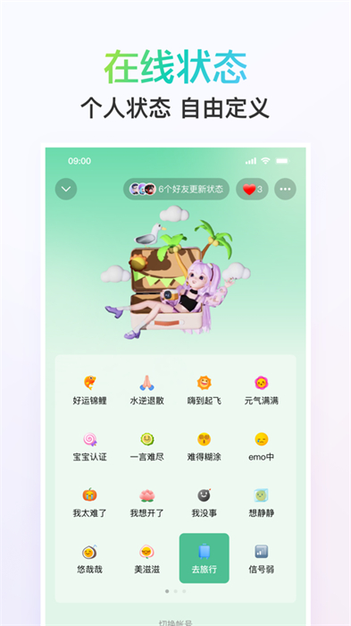 个性装扮:主题、名片、彩铃、气泡、挂件自由选。
