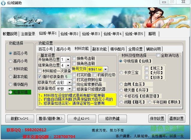 4、自动材料(桃子,三宝等支持换帐号换角色刷)