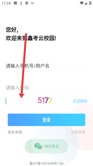 2、在登录页面中点击下方输入框,按照图片中的数字填写验证码。