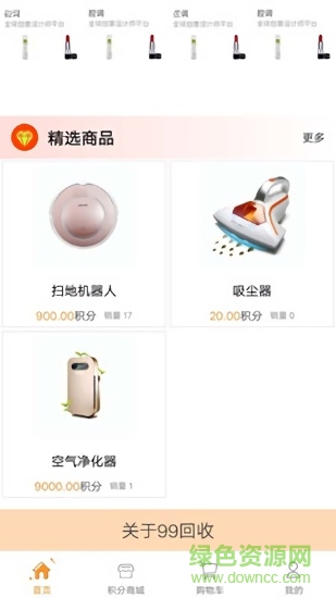 “99回收”是一款垃圾分类回收的app,app围绕用智能垃圾箱对垃圾分类、回收并兑换积分、积分兑换商品的基本形式呈现,日后通过不断的迭代竭力为社会创造更好更先进的垃圾回收模式,同时也倡导了新型的资源回收利用的生活方式为广大群众培养良好的垃圾分类习惯的同时还能通过积分兑换商城节约家庭开支!
