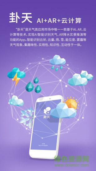 “卦天”是一款基于AI、AR、云计算等技术,实现AI智能识别天气、AR降水实景推演等功能的App。智能识别云状、云量、雨、雪、能见度、雾霾等天气现象,集趣味性、实用性、知识性、互动性于一体。